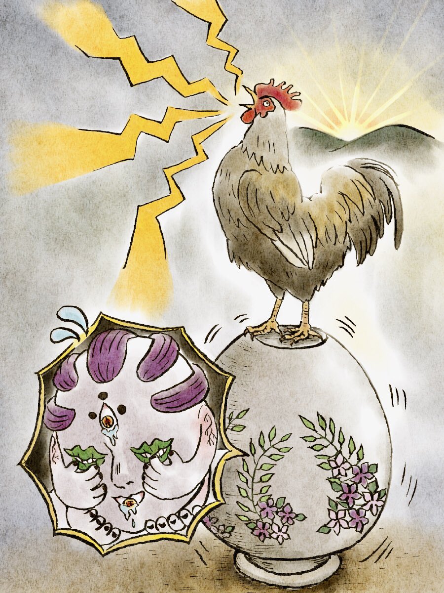#鬼さん深夜の60分一本勝負 @oni1draw1write 遅刻参加失礼いたします…! お題:玉壺/朝告げ鳥 左/1時間 右/+2時間40分