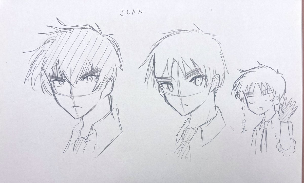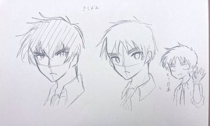 既視感 と、おまけのゆきめちゃん風日本さん 初めてぬ~べ~描いたー #ヘタリア #イラスト