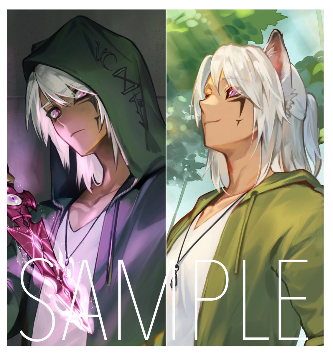 フォロワーさんからのご依頼で創作キャラのイラストを2枚描かせていただきました🐺 ご依頼どうもありがとうございました!