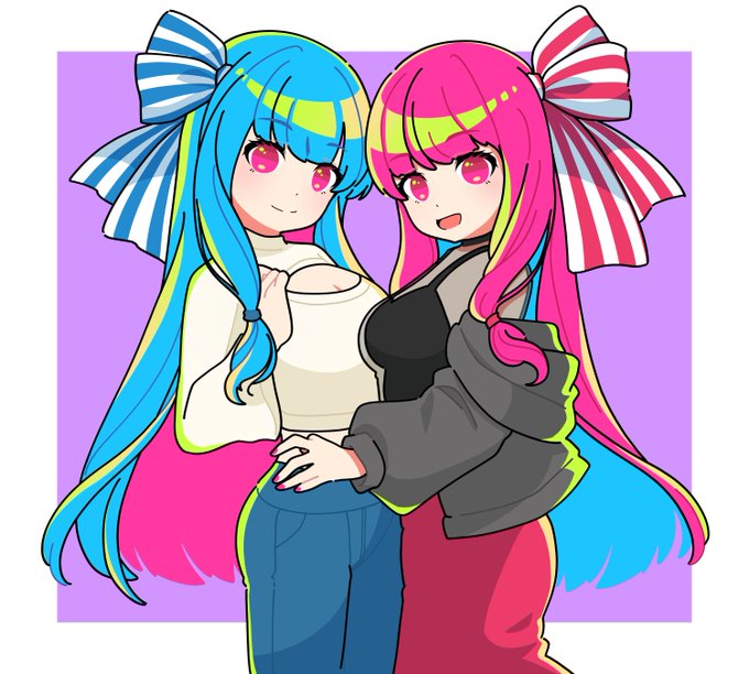 #琴葉葵 #琴葉茜 #琴葉姉妹 前に落描きした琴葉姉妹のちびキャラリメイク Y2Kファッション的な平成ファッション的な何かにアレンジ