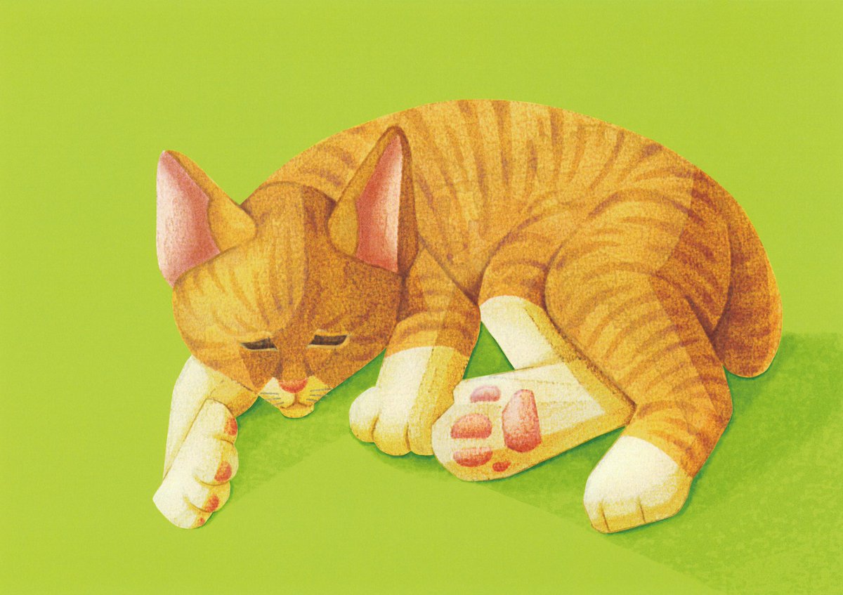 「ポカポカお昼寝」 ニャン展で展示してるイラストその2です。高校時代にガラケーで撮った写真を参考に描きました。気持ち良さそうに寝てますね。私も温かい日差しの中お昼寝したい_(:3」∠︎)_ #illustraion #artwork #創作 #展示 #ニャン展 #2月は毎日ねこの日だよね #猫 #肉球