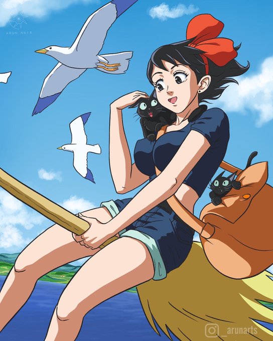INKTOBER Day13: KIND . “Easy now… don’t get too excited Jiji (pet black cat)” - Kiki’s Delivery Service (fan-art) 😉❤️ . 33 years later our lil’ Kiki has grown up to be a rather splendid woman who is so KIND & continues the famous delivery service! @Procreate #inktober2022