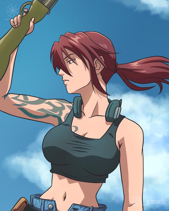 INKTOBER Day19: PONYTAIL . “If you cling to life, you live in fear of death. And that fear will cloud your judgment.” - Revy (fan-art) from Black Lagoon anime 🔥💪🔫 . @procreate & #inktober2022 🔥❤️