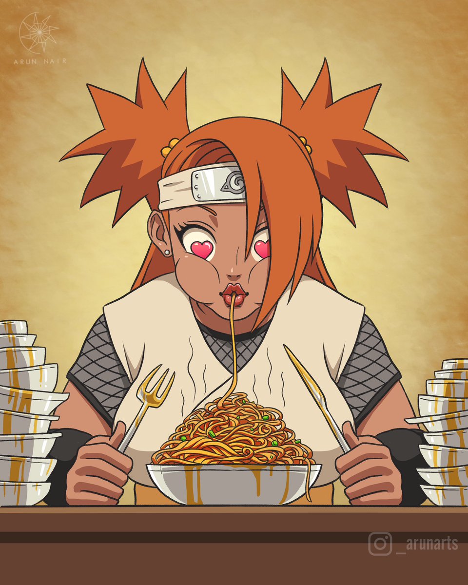 INKTOBER Day27: Snack . “Hey, It’s not what it looks like… I am just *ahem* recharging my chakra!! *yum yum yum* 🤤💕😍”- Chōchō Akimichi (fan-art) from Boruto anime 💪🔥 . @Procreate & #inktober2022 prompts combo 😏