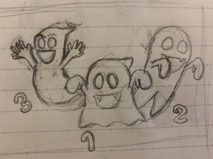 オバケ描いたんやけど、ラウストが1番描きにくくて萎えたんで、めっちゃ雑 #ルイージマンション #rkgk