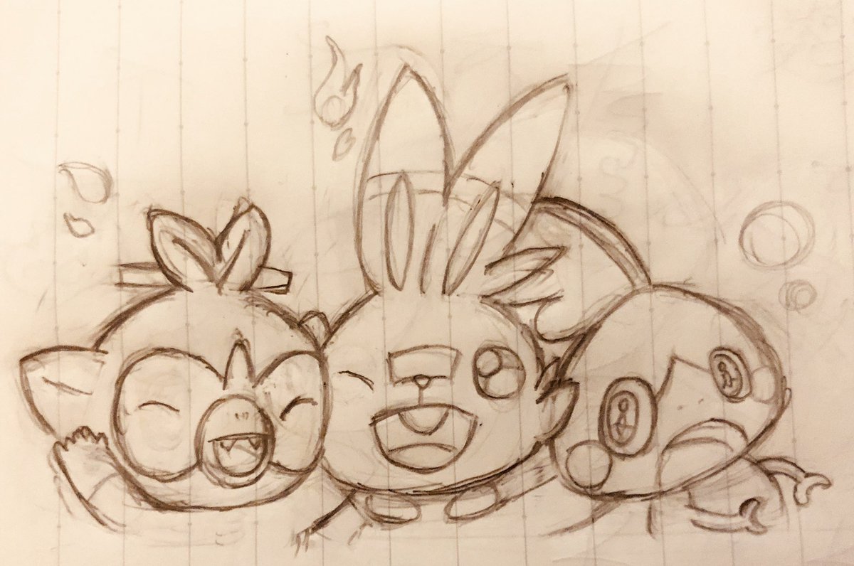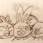 今更やけど、御三家描いたあぁぁぁぁ (デジタル化は気分で) #rkgk #ポケモン剣盾