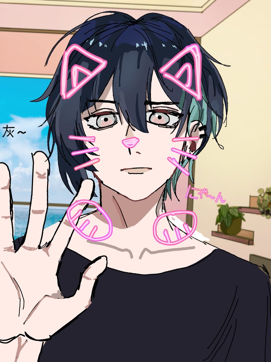 不破くんの髪かきにくいーーーーー!!! ごめん...... #メッシャーズ #灰画 #さ絵ぐさ #絵スコート