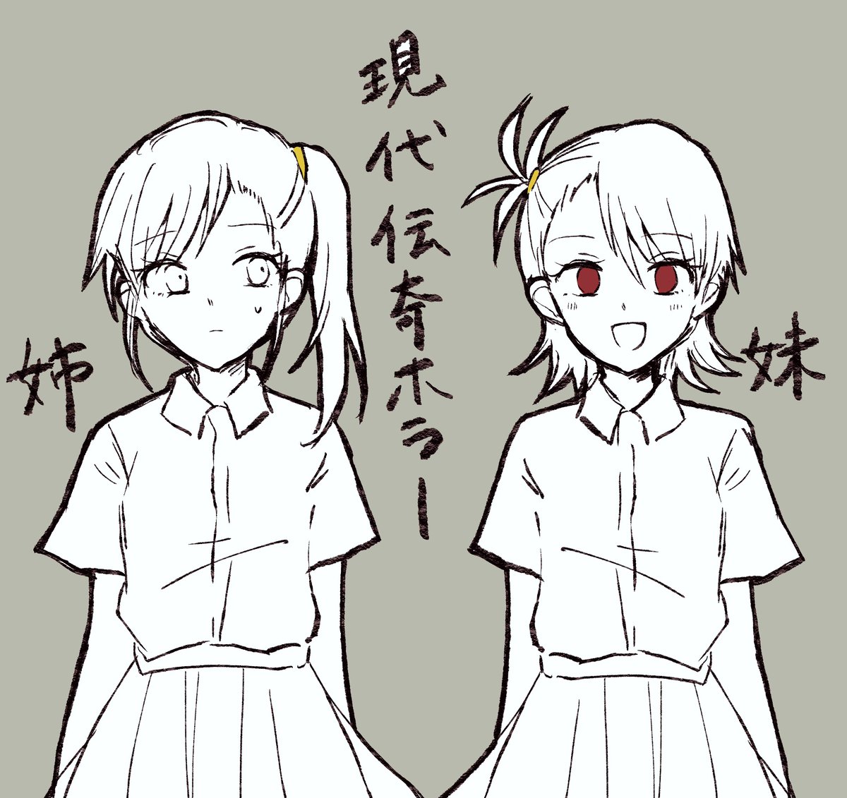現代伝奇ホラー 姉:双海真美 妹:双海亜美 #ミリオンキャスティング #ミリシタ投票MC 個人的には、普段は刺激しあいつつお互いに高めあっている双海姉妹の、ここぞとばかりの「姉妹・双子ならでは」の表現と物語が見たいッ!!ってことで! ※パロディ絵