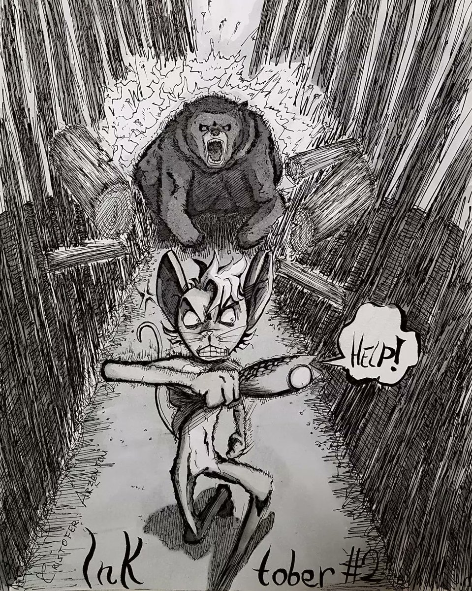 Ohu no! It's about to fall!😯😱 It will burn!🥵🔥 But... ... how did it end up there?!😒 @inktober #Inktober #inktober2022 #inktoberday8 #match #flame #gas #gasoline #fire #cartoon #cartoonoftheday #traditionalart #grayscale #marker #Ink