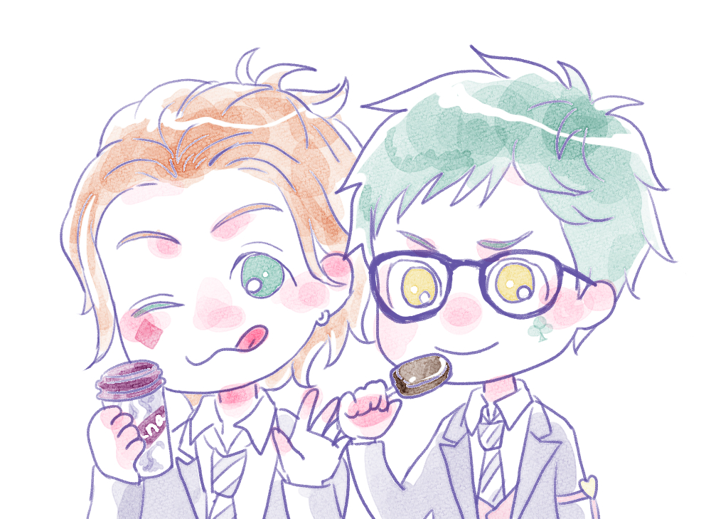 けーくん甘い物嫌いだけどパナップが似合う(?)と思う…そしてトレイパイセンはPARMが似合う #ツイステファンアート #ツイステ絵描きさんと繋がりたい