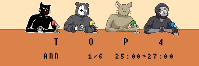 自分のヘッダー用に描いたTOP4(ほぼトレス) オールナイトニッポンたのしみだなあ!! #イラスト #実シ兄者絵描きさんと繋がりたい