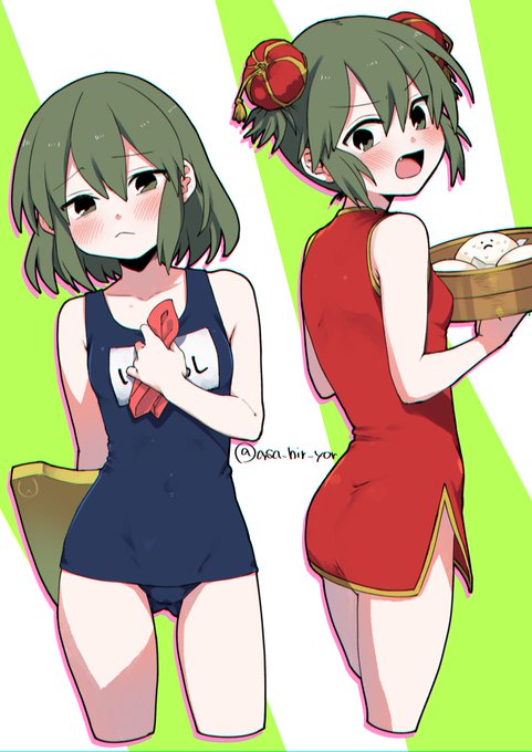#先輩がうざい後輩の話 (@shiromanta1020) 照れ照れ五十嵐ちゃんスク水&チャイナ🩱🥟🥰