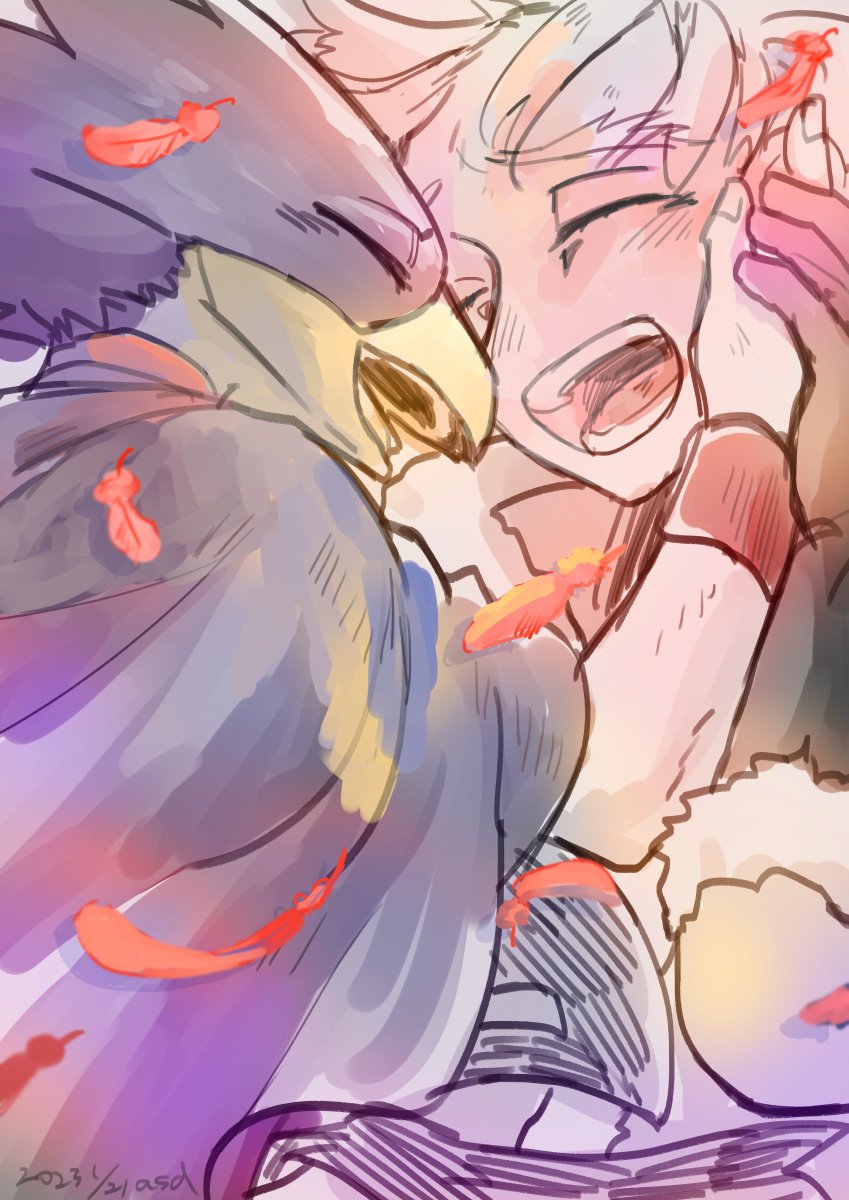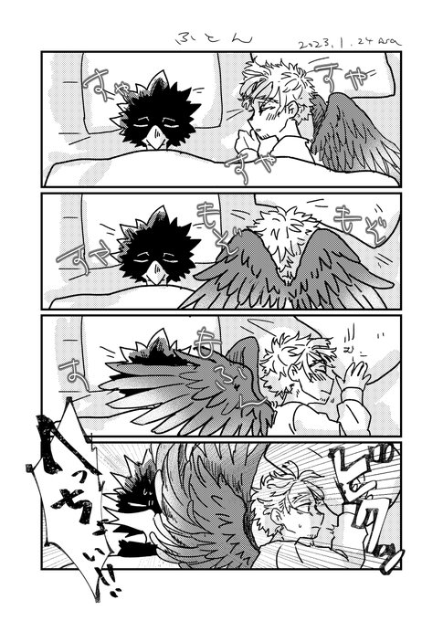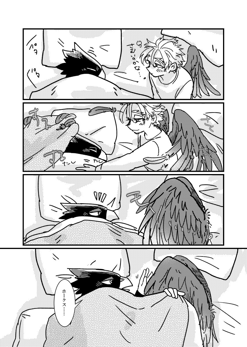 18 128 第2回 「布団」で参加します〜。 一緒に暮らしてるとこほです。羽のサイズがまちまちで申し訳ない。寝返りネタです。 #常ホ週ドロライ 23/01/24 22:45