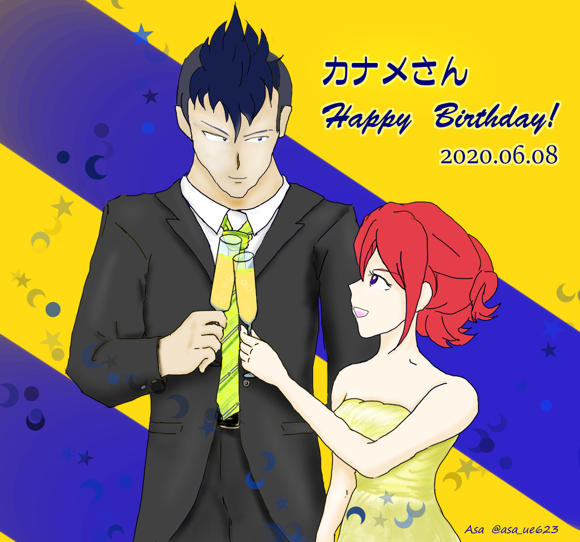 カナメさん、HAPPY BIRTHDY!! メッサーが背後から忍び寄って視線を送る怪しい人になってしまったけど、心から祝って微笑んでいます… ってカナメさんはわかってます、きっと #カナメ・バッカニア生誕祭2020