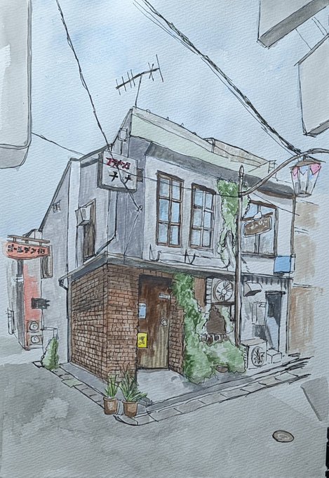 新宿ゴールデン街をスケッチしました。画材:ボールペン・水彩、サイズ:A4 I sketched Shinjuku Golden Gai, Tokyo, Japan. Art materials: ballpoint pen / watercolor, size: A4 #水彩画 #watercolor #artwork