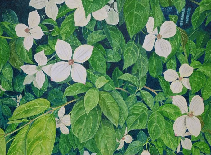 ヤマボウシを水彩で描きました。画材:水彩、サイズ:F4 I drew a Kousa dogwood in watercolor. Painting material: Watercolor, Size: F4 #水彩 #watercolor #artwork