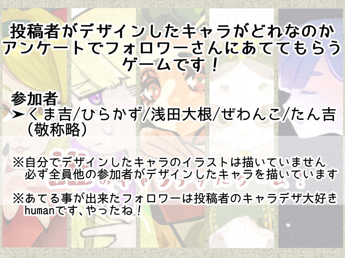 ✍️👽【#誰のキャラデザだゲーム】 絵描き当てゲームのお時間よ!!!!! レギュレーションは画像に記載されている通りです。 私が描いた絵ではなく、「私がキャラデザをした」絵をあててくれ〜ッ!!!!! (一緒に遊んでくれたみなさま…ありがとう…)