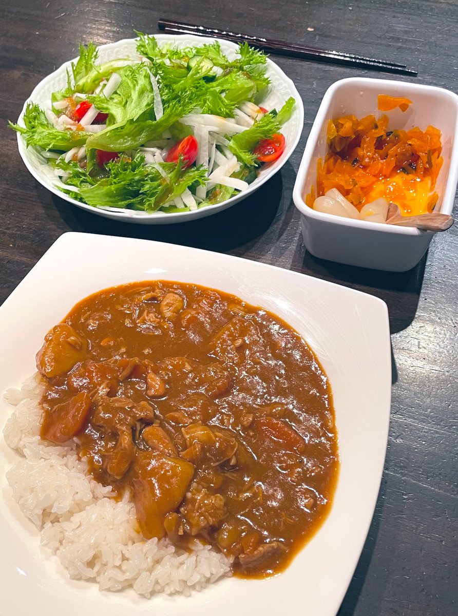 お言葉、本当に皆さんありがとうございます。優しすぎるTwitterに涙…🙏 昨日のカレー。辛いの苦手で豚に少しアレルギーがある12才、毎度鶏肉です。 そして浅田家のルウはここ何年かこれ一択、#かぞくのためのカレールウ。リアルに50代の胃にも優しい😆 カレーにはかなわない。明日また生きよう。