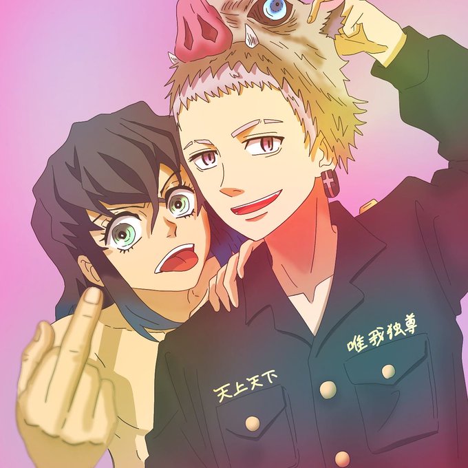 三ツ谷と伊之助 CV.松岡禎丞 #イラスト #東京リベンジャーズ #東京卍リベンジャーズ #鬼滅の刃 #三ツ矢隆 #イラストレーション #絵描きさんと繋がりたい #フォロバ100