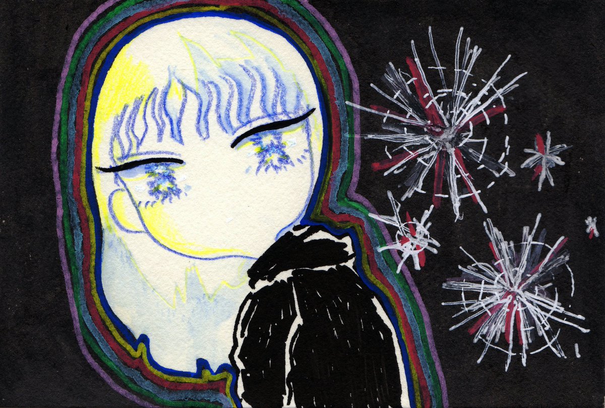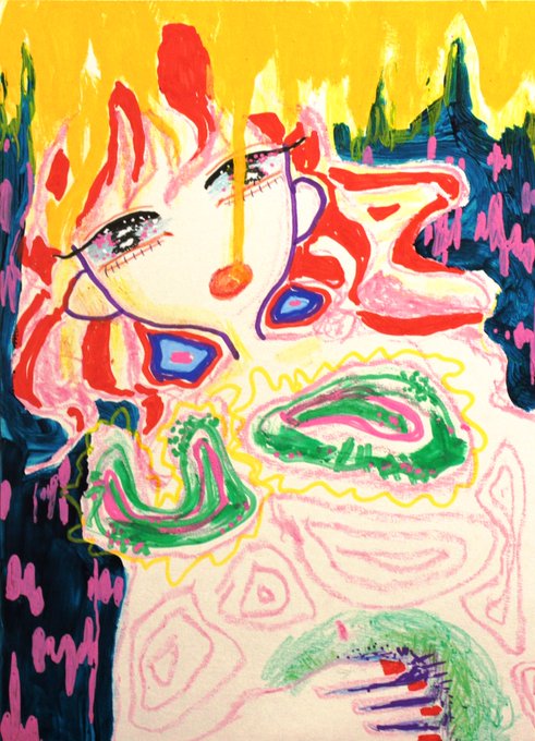 4 22 画材 水彩色鉛筆、アクリル絵の具、ボールペン、ポスカ #illustration #illustrationart #幹夫800アート #絵描きさんと繋がりたい 23/01/09 11:57