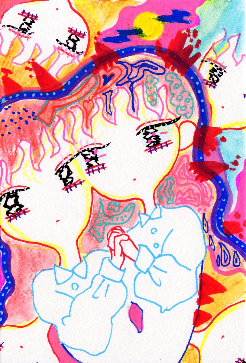 画材 水彩色鉛筆、アクリル絵の具、ボールペン、ポスカ #illustration #illustrationart #幹夫800アート #絵描きさんと繋がりたい