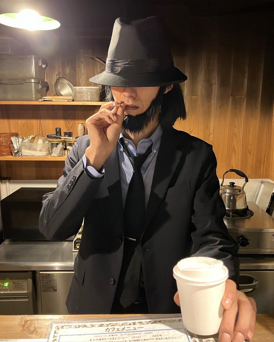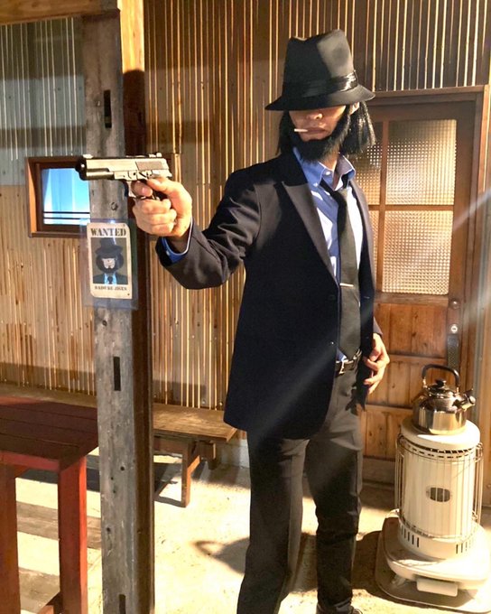 こんにちは。 今年のハロウィン仮装は、ルパン3世より「次元大介」です。 この仮装で明日31日まで営業しています。 (営業時間外に撮影した物です、2枚目のように営業時はマスク着用しています) #ハロウィン #コスプレ
