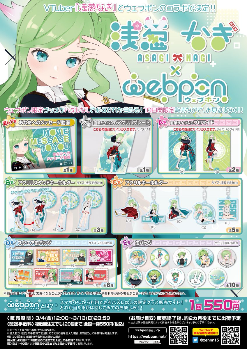 🎉販売開始🎉 ウェブポン、浅葱なぎ第2弾! いよいよ開始ィーッ! めちゃめちゃキュートな浅葱とボブをメインに、もりだくさん! 今日から10日間、ぜひとも!回してくださると嬉しいです!! 浅葱も土曜に配信で回すぞ! #浅葱ウェブポン でよろしく! 🫵🏻 こちらから! webpon.net/shop/ASG/plan/… twitter.com/zennn15/status…