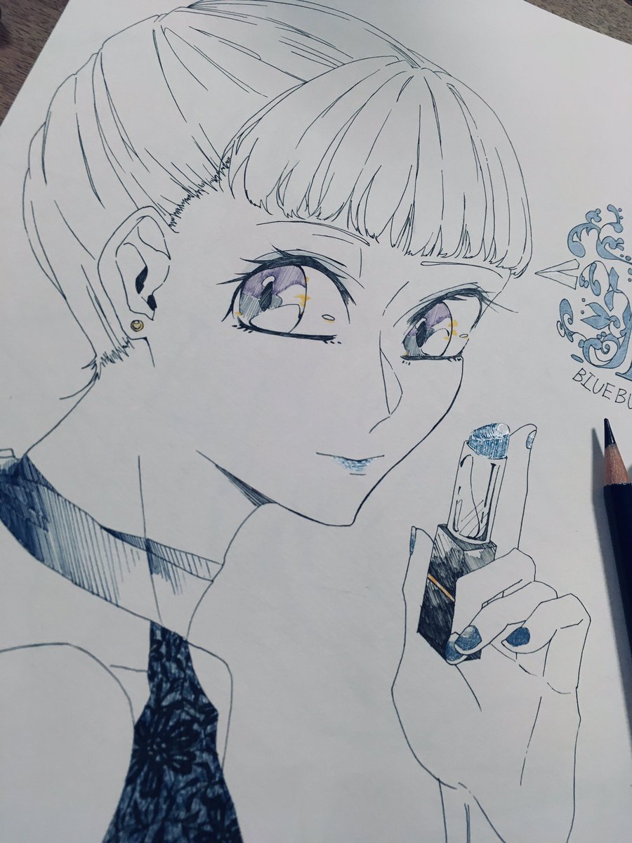 受験終わったので久々に描いたー👏 望月けい様(@key_999 )のイラストを模写させていただきました!!🙇♀️ すごく絵柄が好きです…線の書き方とか大好きです🙏😭✨ #絵描きさんと繋がりたい #イラスト #模写 #イラスト好きさんと繋がりたい