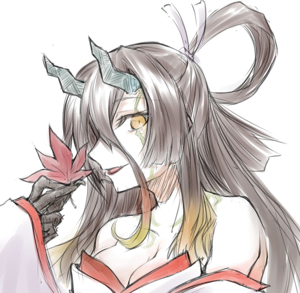 まもるさん(@_0A0)からのリクエストで、刑部姫を描かせていただきました! 完全モノクロにしようかと思ったのですが、無背景も寂しいので申し訳程度の色をつけてお茶を濁す作戦。 #フォロワーさんの推しが描きたい #FGO絵描きさんと繋がりたい