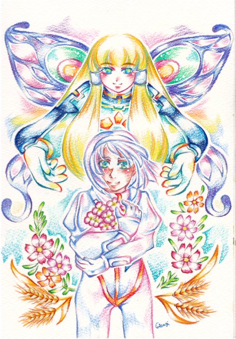 #G版深夜の真剣お絵描き60分一本勝負 お題『ディアナ・ソレル(∀ガンダム)』 そういえば、この衣装のディアナ様を描いた事がないな、となりまして。 周りに咲かせた月見草の花言葉は『無言の愛情』。 それは正に『月の女神』の名の通りに、静かに、けど確かに、ロランや人々を想っている……🌕🦋
