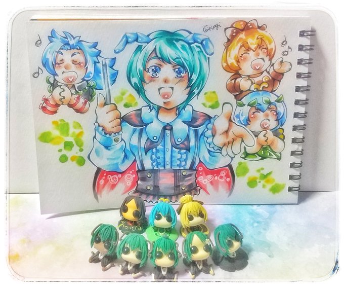 #6月4日はリグルの日 #東方おちび 6月4日は『虫の日』 そして、リグルちゃんの日!💐 リグルちゃん、今年もおめでとう✨ 先日の春例にて、数年振りにねり子さん(@neriko_nerineri)のおちびちゃんとご対面できたのが嬉しかったので…… 虫組&リグルおちびちゃんの皆と一緒に、コンサート!🎶