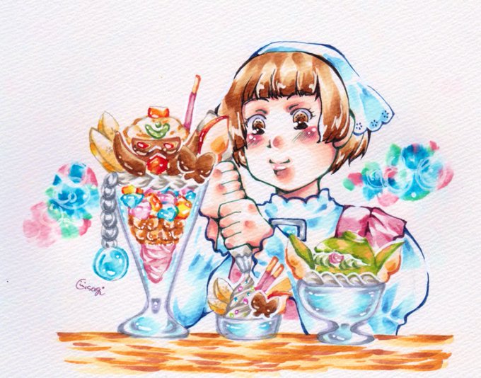 #2023年自分が選ぶ今年上半期の4枚 ・ω・)絵だけのもやりたくなりました。 描いた絵全部が好きなので、特に『がんばった!』というのを選出。お菓子お花だけじゃなく、メカや新しい塗りにも挑戦しました。