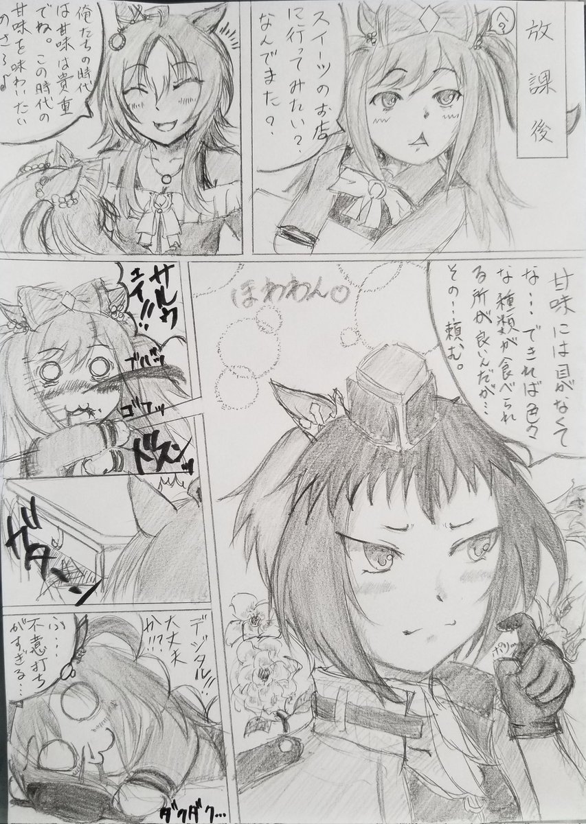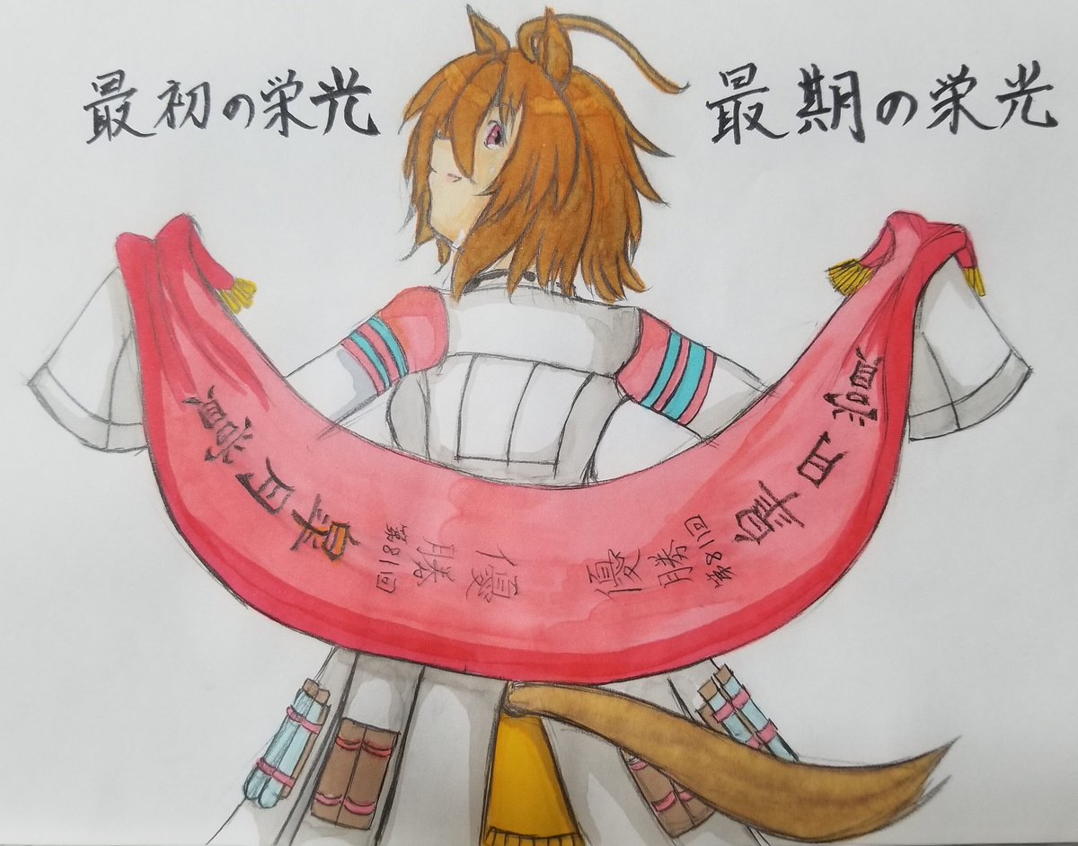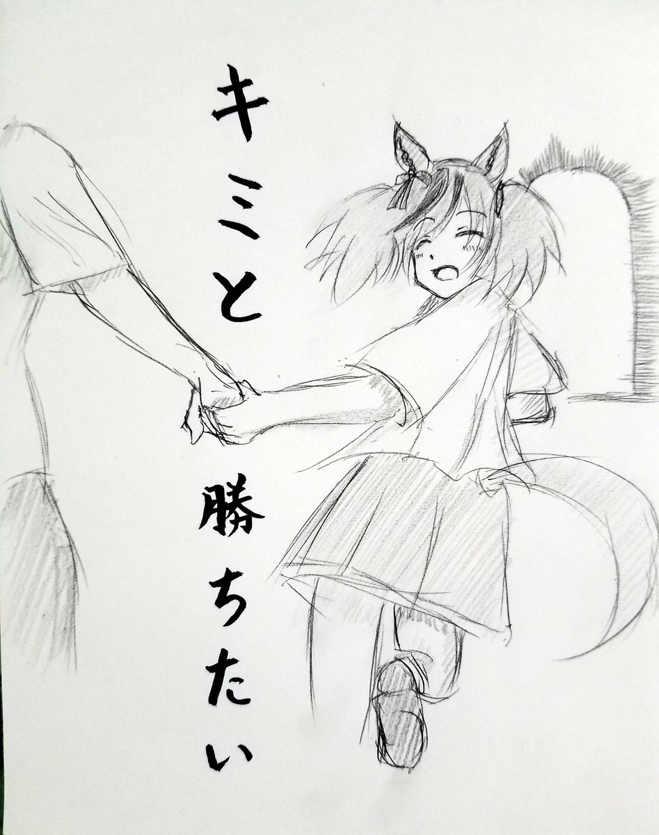 タキ「ほら、トレーナー君。1冠目さ…ふふっ…あれ…?私も…感極まったのかな…脚も、震えているよ…」 色々トラブルがあって結局デジタルはまにあわないので、アナログにシフト。 #アグネスタキオン #アグネスタキオン生誕祭2023