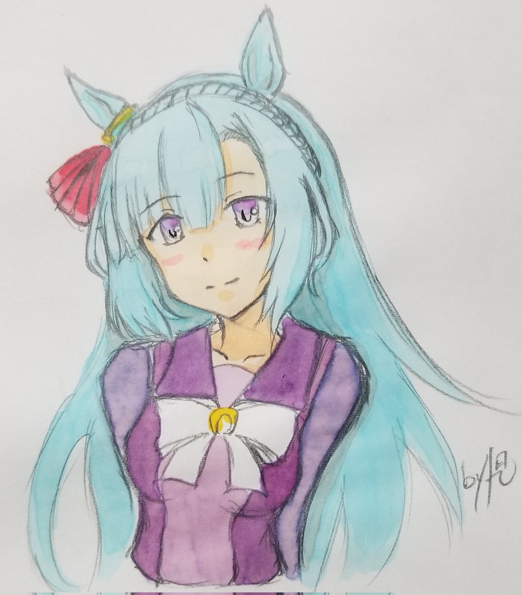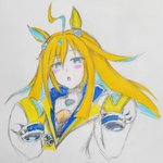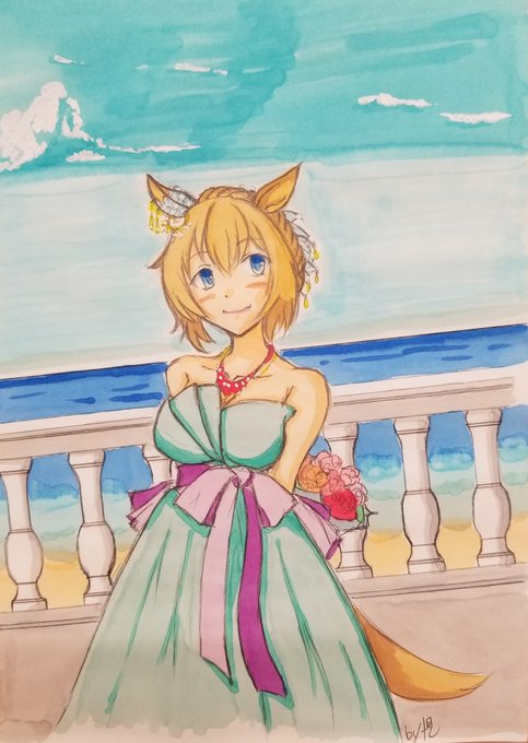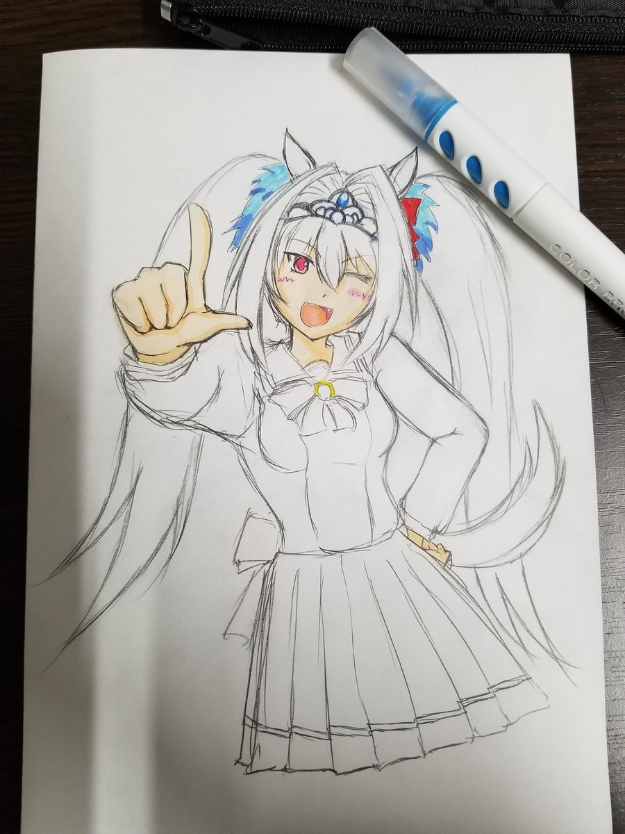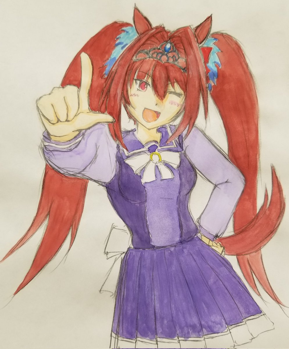 タキ「ほら、トレーナー君。1冠目さ…ふふっ…あれ…?私も…感極まったのかな…脚も、震えているよ…」 色々トラブルがあって結局デジタルはまにあわないので、アナログにシフト。 #アグネスタキオン #アグネスタキオン生誕祭2023