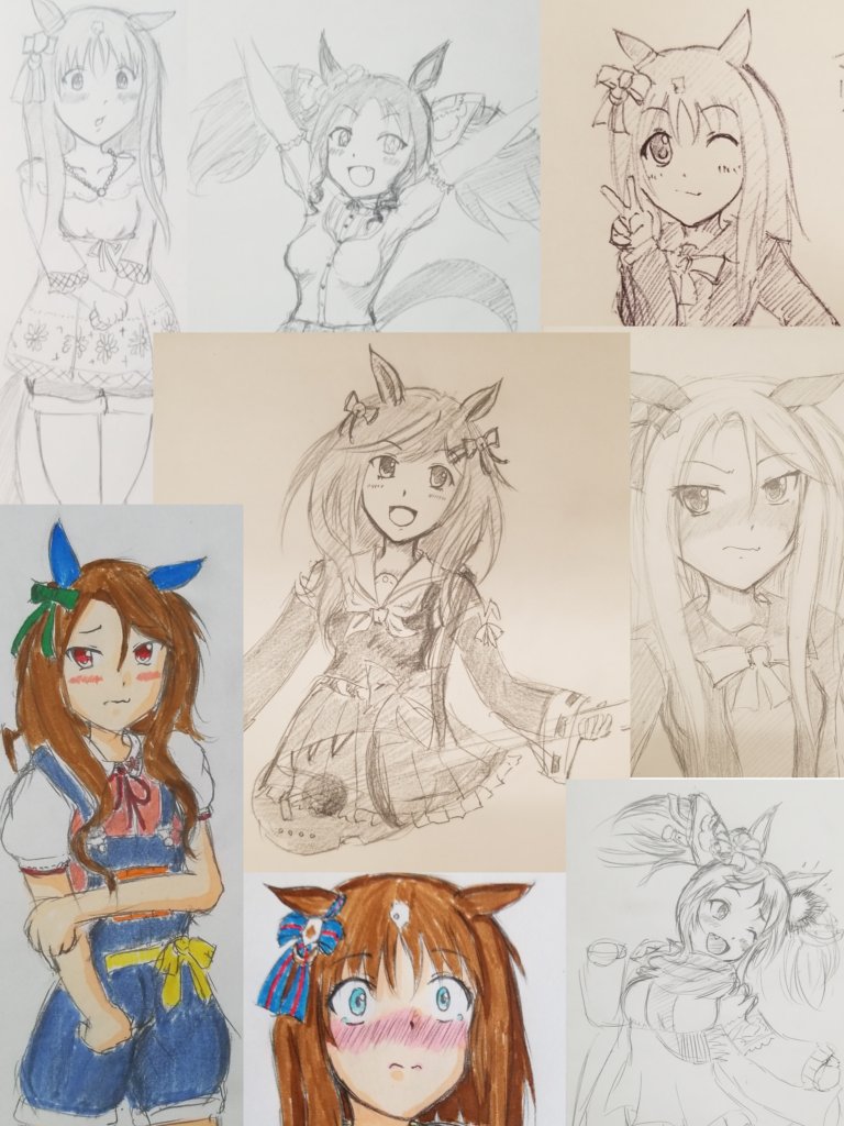いつも通り沢山描いた。 カレンチャン以外も結構描いたなぁ。 #今月描いた絵を晒そう #ウマ娘 #カレンチャン #キングヘイロー #グラスワンダー #マーベラスサンデー #マチカネタンホイザ #アドマイヤベガ