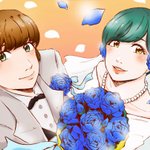 #シークレットシュガーMV大作戦 出遅れましたが、出来ました!!! 花・リボンの色指定があるのかよく分からなかったので、青/白で描きました(正しい方を使ってください) 青い薔薇には「神の祝福」という花言葉があるそうですね。