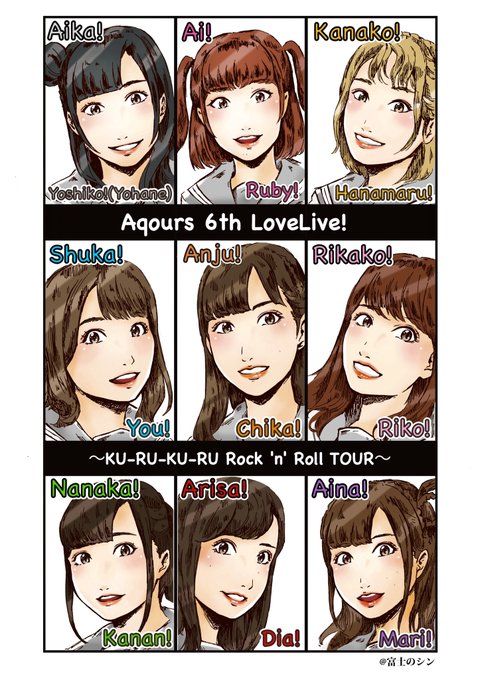 今回はAqoursキャストのみなさんを描いてみたよ🖋 似顔絵は専門じゃないので難しかったけど、なんとか間に合った〜。 キャストのみなさん! 名古屋の2日間、頑張ってね👍 #Aqours6th #lovelive