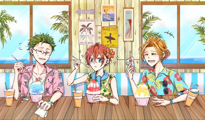 リドルのお誕生日に南国旅行するハーツ上級生組🌴🌺 ♦️「来年は忙しいかもだしね〜」 ♣️「その分も今年はお祝いしないとな」 🌹「来年も、その次も一緒にお祝いしたいな🥺」 ♣️♦️「もちろん!!」 #リドル・ローズハート誕生祭2022 #リドル・ローズハート生誕祭2022 #ツイステファンアート
