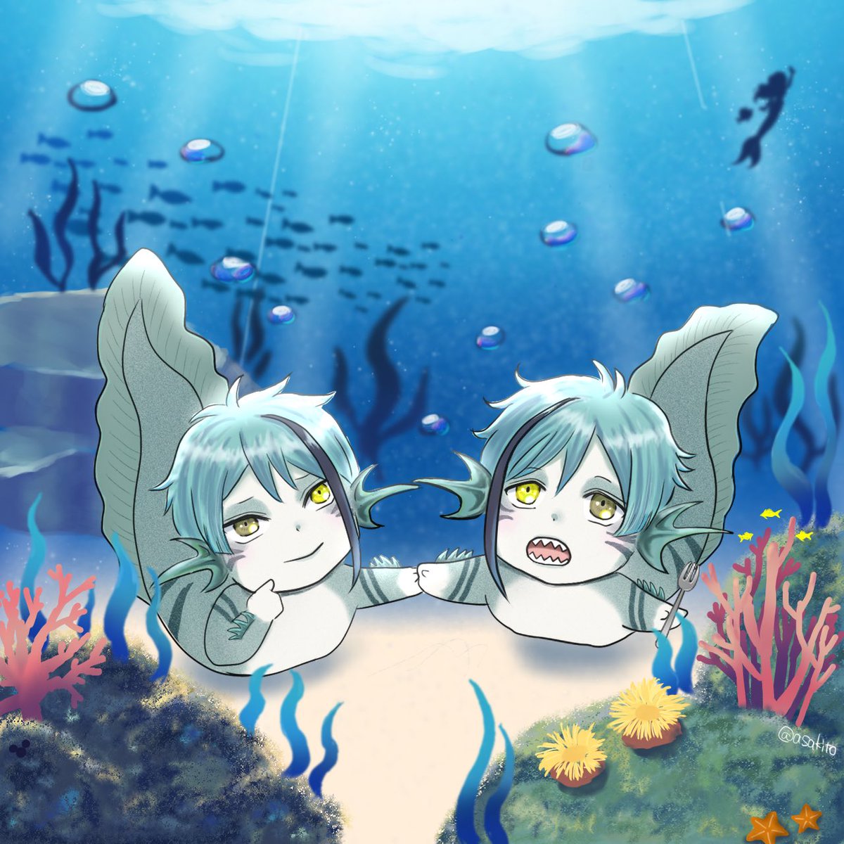 お誕生日おめでとう🎉🎉🎂🎂 過去絵だけどお祝いしたかった #ジェイド・リーチ誕生祭2022 #フロイド・リーチ誕生祭2022 #リーチ兄弟誕生祭2022 #twstファンアート #ツイステファンアート