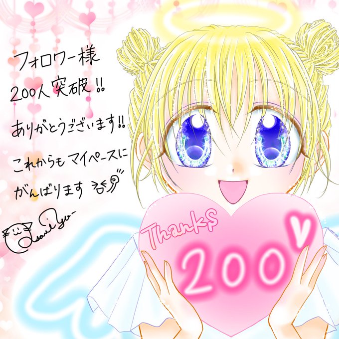 フォロワー様200人突破イラスト完成しました! 前回に引き続き天使ちゃん😆 みなさまありがとうございます😍 感謝感謝です💕 サイン初めて書いてみた(◍•ᴗ•◍)笑 #絵描きさんと繋がりたい #絵柄が好みって人にフォローされたい #春の創作クラスタフォロー祭 #イラスト