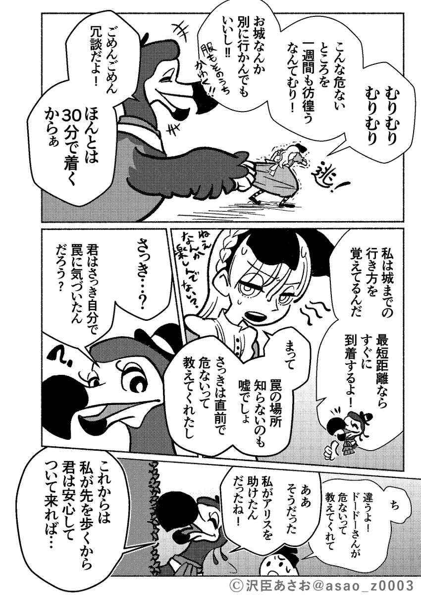 #すべてを忘れてしまったアリスの話 の第二話フルバージョンです ※注意:軽い流血&暴力表現あり ぜひ、RTとフォローで応援をお願いします😆 #不思議の国のアリス #AliceInWonderland #漫画が読めるハッシュタグ (1/5)
