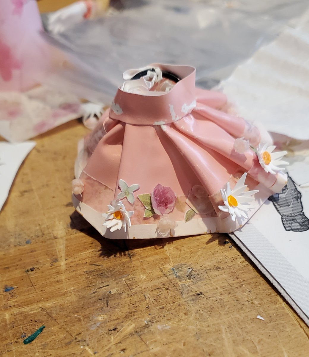 9 34 全身 マジカルバーゼと愛花ちゃんがベースになっています ほとんど原型ないけど少しずつ削ったりしました! 二層の配管テープスカートは胴体と腹部の間に挟んでます #メガミデバイス 23/07/03 20:33