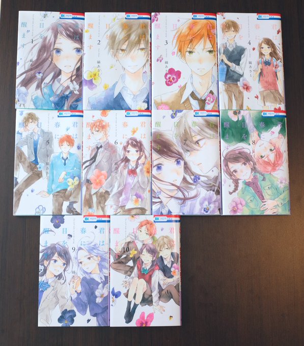 10巻の見本頂いたので全巻並べてみました。何巻のカバーがお好きでしょうか! タイトル的にもラストの内容的にもとてもいい時期に発売されるので嬉しい🌸🌸 「君は春に目を醒ます」10巻(完結)4月5日発売ですのでよろしくお願いします!