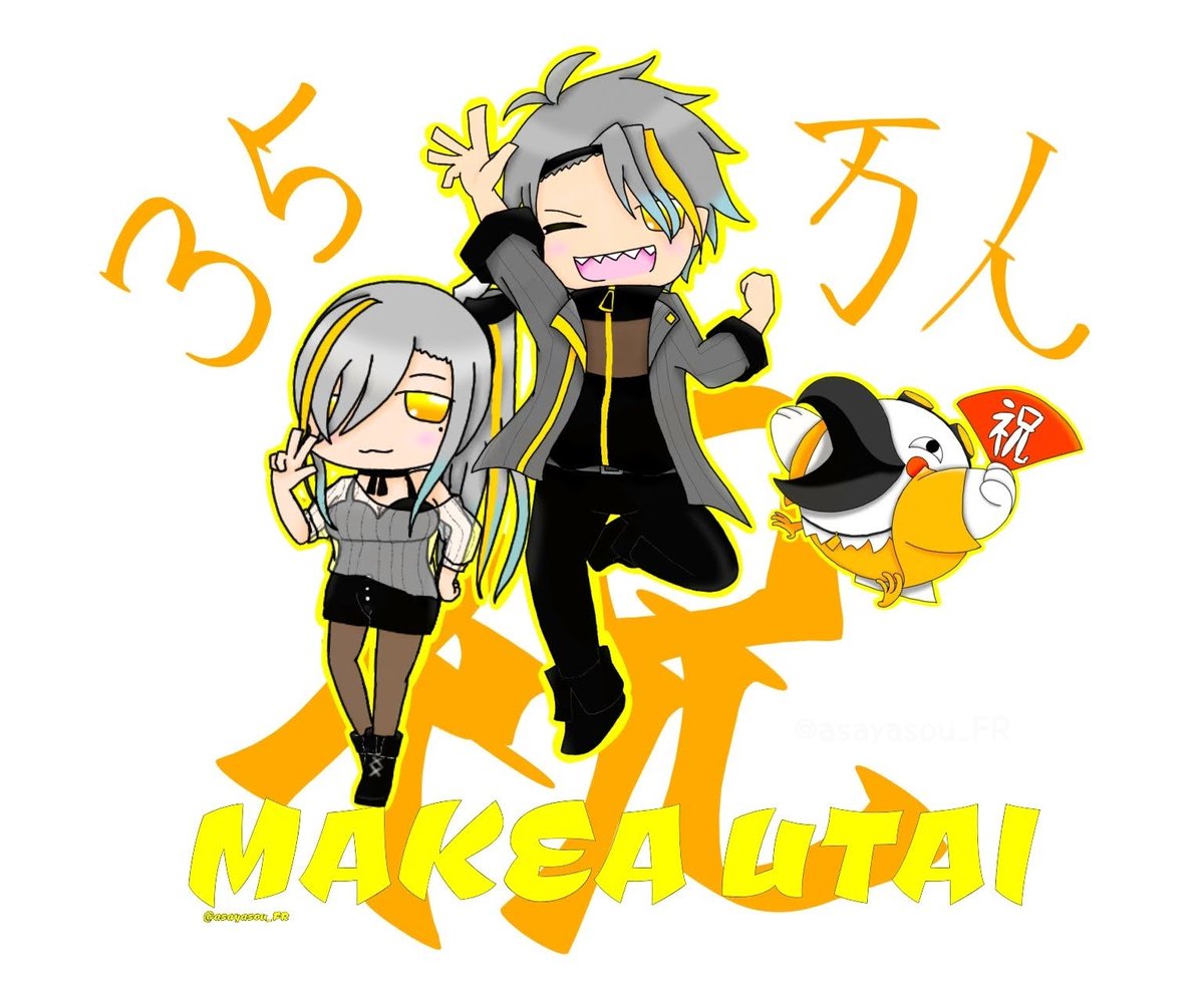 祝🥳35万人!!! とても元気なメイカちゃんと優しくて可愛いめいかねぇさんを好きになってよかった!!! 明日からも頑張ってください🥳🥳 ほんとにおめでとうございます👊🏠💛 #make_a_art #漢気名画
