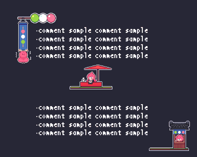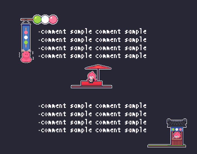 最近の進捗報告も合わせて書きました 【WIP】お団子のコメントフレーム試作 - はじめのドット絵クラブ (朝夢はじめ)の投稿|ファンティア[Fantia] fantia.jp/posts/1644272 #ドット絵