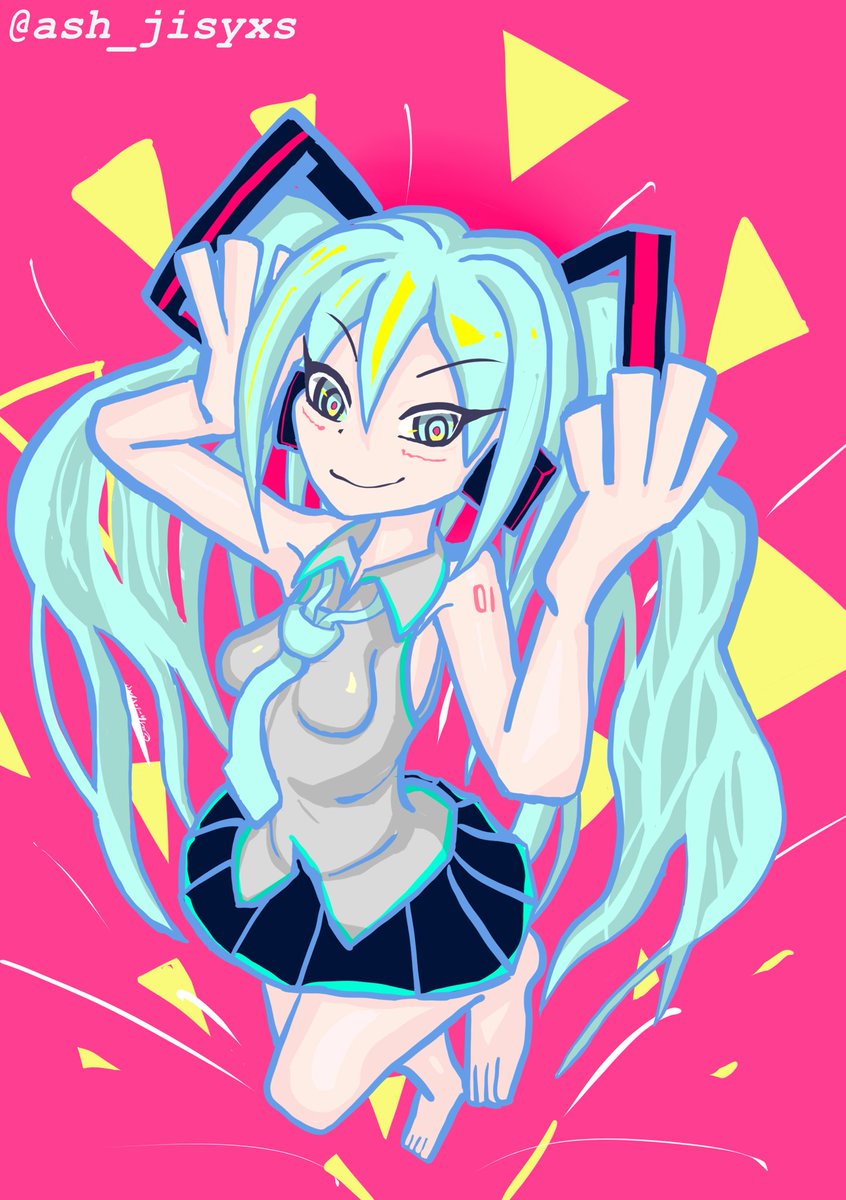 50 160 初音ミク/ミクさん15歳の誕生日おめでとう絵 #初音ミク誕生祭2022 (#初音ミク生誕祭2022 )の絵です!!! こういうビビッドアンドポップな感じの絵柄描いてて楽しいな! 22/09/02 22:41