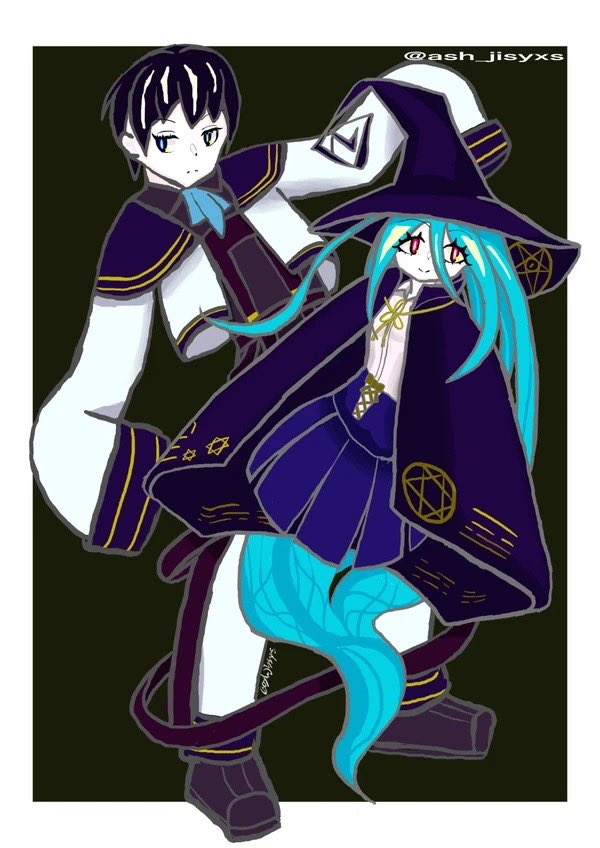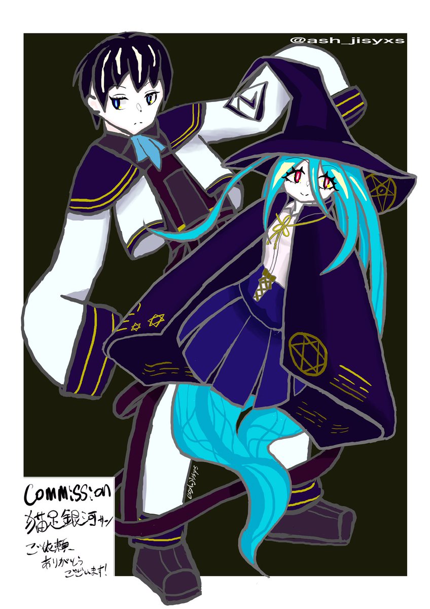 猫足銀河(@ Miz_ashiginga) さんからSkeb依頼いただきました敷島暦くんと青い魔女ちゃんです!初めてコミッションやった!緊張した!好き勝手に描かせてもらったけど満足してもらえたらいいな…