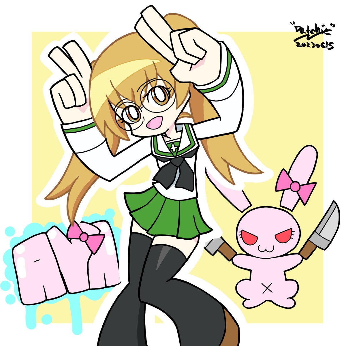 #今月描いた絵を晒そう 2枚(とskeb)だけ…… ガルパンアリスギア金髪バースデー