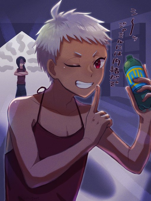 スカモブ生になって深夜キッチンに水を飲みに起きたら、寮長のつまみ食い現場に遭遇してジュースで買収されたい☺️ そして一緒に副寮長に叱られたい… #twstファンアート #ツイステファンアート