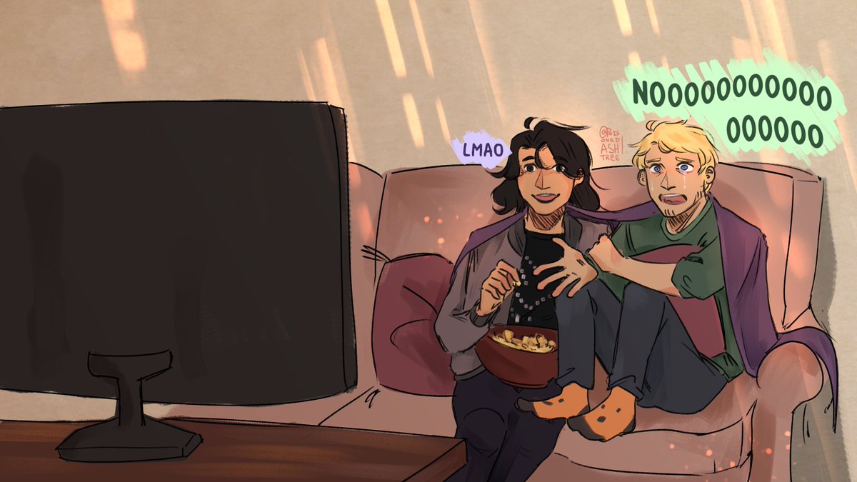 tommy said phil n kristin were watching squid game, and i vaguely remember phil saying that kristin laughs at sad stuff drop in the comments what scene you think they're watching // #philzafanart #mumzafanart [untag if replying]